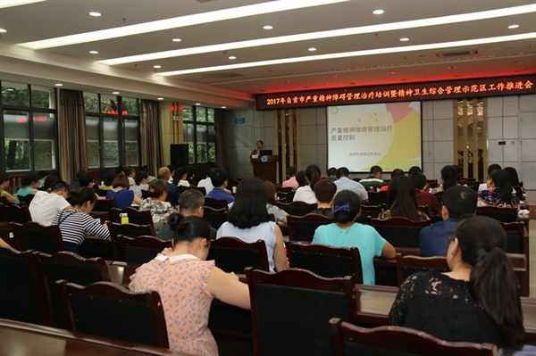 为认真贯彻落实全省严重精神障碍管理工作会议精神,提高我市严重精神障碍患者规范化管理率,8月25日,2017年自贡市严重精神障碍管理治疗培训暨精神卫生综合管理示范区工作推进会在市精神卫生中心召开。会议由市精神卫生中心副院长刘成文主持,各区县卫计局、精防机构、设立有精神(心理)专科的医疗机构相关人员共80余人参会。