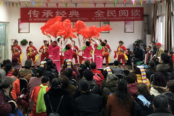 12月14日上午,我院正润居家养老中心(洞桥社区日间照料中心)携手和乐歌舞队、贡山艺术团举办“传承经典,全民阅读”活动。