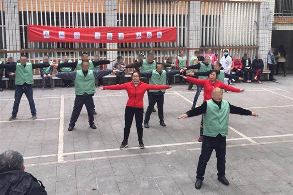随着一声令下,各个病区的"运动员"们迈着整齐有力的步伐依序入场,随着熟悉的音乐响起,大家精神抖擞、气宇轩昂,从伸展运动到整理运动,一伸手、一抬腿,每一式都刚劲有力,展现了良好的精神风貌。