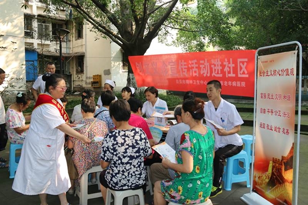8月17日上午,医院创文义诊宣传活动在青杠林小广场举行,旨在向社区居民宣传文明城市创建工作,普及健康知识。