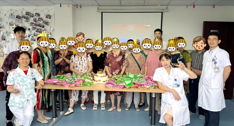 新桥院区(心身科一)支部开展“我为患者办实事”主题党日活动,为上半年生日的患者举办了一场简单而又温馨的集体生日会,真诚为他们送上生日的祝福。