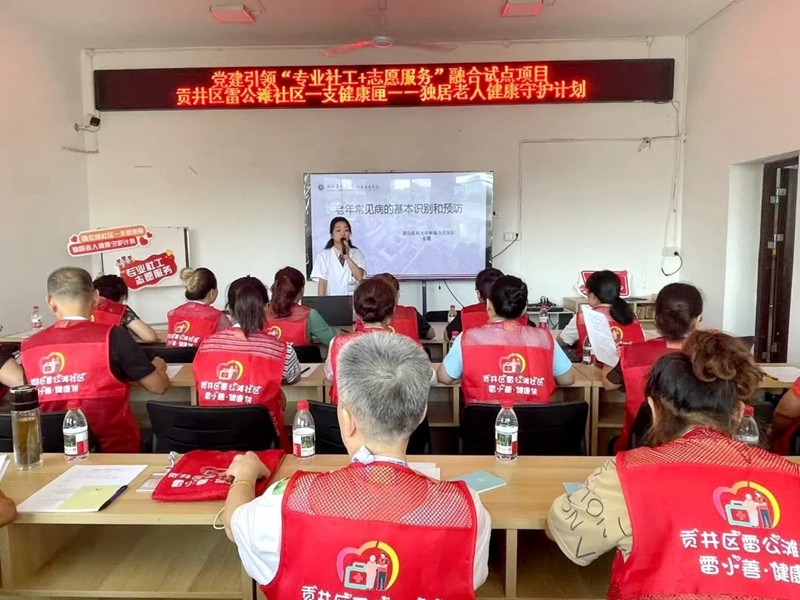 综合科二支部到贡井区雷公滩社区开展“独居老人健康守护”专题讲座及相关知识培训,切实帮助社区干部、社区义务照护小组工作人员掌握老年常见疾病的预防、监测与护理知识,提升其健康监测技能,为社区独居老人提供更加贴心、专业的健康服务。