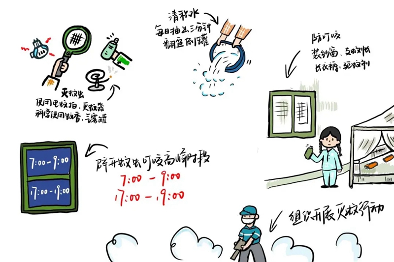 此外,还要保持居住环境的整洁卫生,及时清理垃圾,避免垃圾堆积产生积水,为蚊子提供孳生的场所。