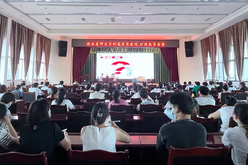 近日,我院在学术报告厅开展情景式护理教学查房,旨在提升规陪学员专科护理水平。