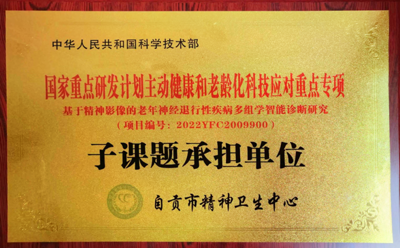 11月8日,在四川大学华西医院举办的国家重点研发计划项目启动会授牌仪式上,我院获国家重点研发计划主动健康和老龄化科技应对重点专项“基于精神影像的老年神经退行性疾病多组学智能诊断研究”子课题承担单位授牌。