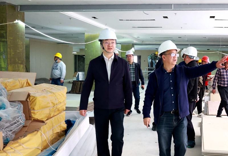 4月6日,市政府副市长陈张铭调研自贡市老年病医院建设项目二期工程。市卫健委副主任倪志勇,我院党委书记谭友果、副院长陈翠容、副院长叶安红陪同调研。