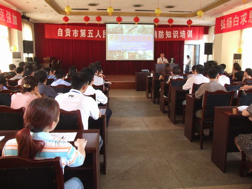 近日,市五医院为强化消防管理,全面落实市政府、市卫生局等上级部门《关于实施构筑社会消防安全“防火墙”工程有关问题的通知》精神,特邀请省消防培训中心邱科教官就火灾的种类、火灾的预防、初期火灾的扑救、火灾中的应急逃生以及地质灾害的避险等内容开展了2010年安全知识培训,并同时举行灭火演习。全院医务人员除值班者外参加了此次活动,此次培训进一步提高了医护人员的防火意识,增强了自防自救能力。