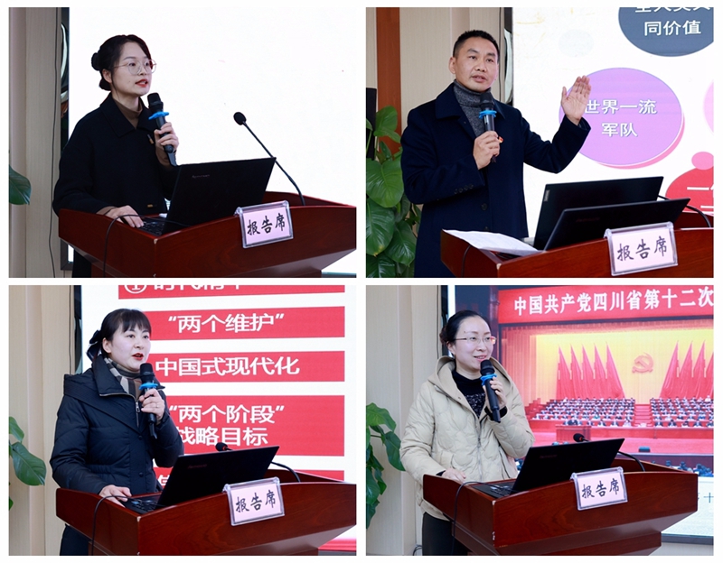 宣讲邀请到了四川卫生康复职业学院马克思主义学院讲师廖声莲,自贡市委党校教研室副主任、副教授王贵锌,荣县县委党校讲师何莉,四川卫生康复职业学院马克思主义学院党总支书记、院长秦丹,分别以《增进民生福祉、助力健康中国——学习贯彻党的二十大精神》《新时代中国共产党的思想旗帜——学习贯彻习近平新时代中国特色社会主义思想》《学习二十大党章 提升医者为民情怀》《深入学习省市党代会精神 加快推进健康四川建设》为题展开讲授,既有对党的创新理论、新思想的宏观解读,又有结合省市及卫生健康行业实际深入浅出的解析,具有很强的指导性、针对性和实践性。