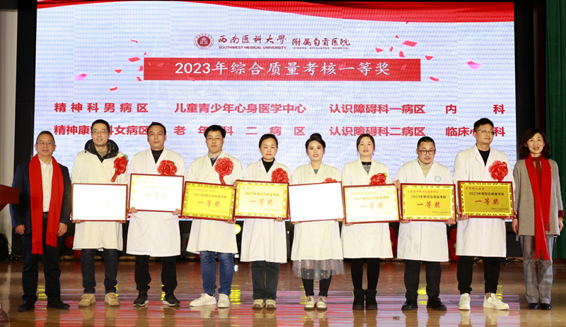 会上,西南医科大学党委常委、副校长何涛向我院一年来付出的努力和取得的成绩表示肯定和祝贺,同时提出了三点要求,一是要持续加强内涵建设,推动医教研防产协同发展,不断增强医院综合实力;二是要持续提升教学能力,积极推进西南医科大学精神卫生学院建设,办好同等学力申请硕士学位学习班、精神科转岗医师培训班等,打造高质量全国精神科住院医师规范化培训基地;三是要持续提高科研创新能力,依托自贡市脑科学研究院,不断加强科研平台建设,稳步提升科研创新能力,推动成果转化实现更大突破。