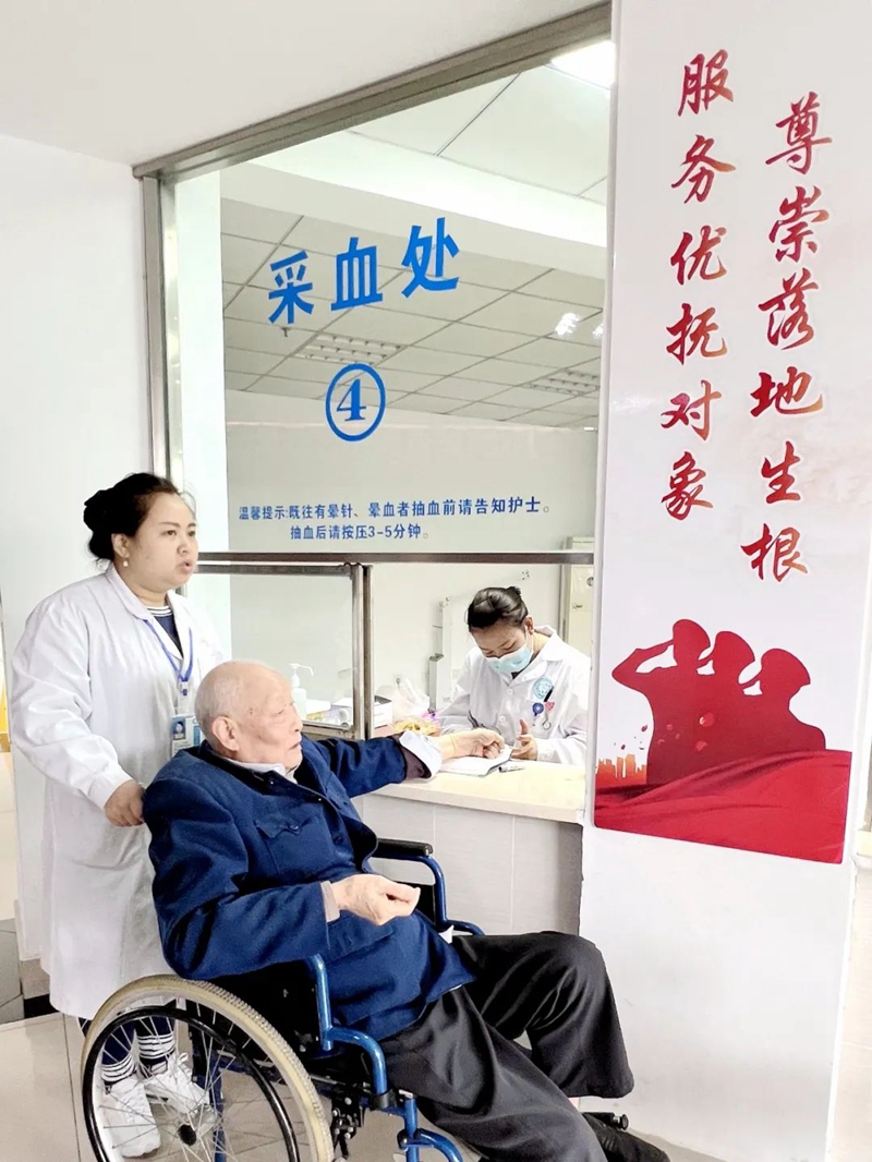 体检过程中,我院强化陪检引导,对于年龄较大、身体欠佳、行动不便的优抚对象,我院还提供陪检照护服务并优先安排。