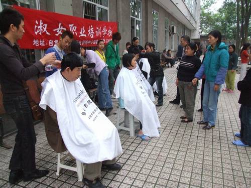 ——市淑女职业培训学校师生为精神病人理发