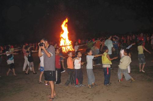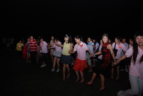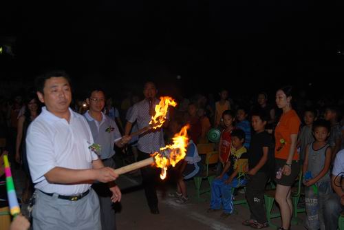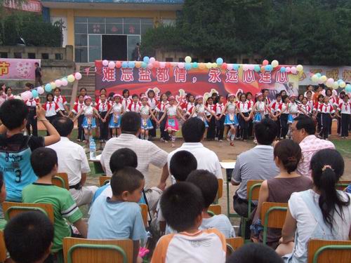 晚会中,市五医院为全校的教师每人赠送了一张富有自贡特色的工艺品扎染丝巾,并为即将回到新教室上课的每个班级赠送了一幅剪纸壁画。在谭院长和董校长的主持下,羌族开坛仪式后,熊熊的篝火照亮了整个操场。所有的来宾在威小师生的带领下加入到了锅庄队伍中。他们手拉手,心连心.尽情的唱起了歌、跳起了具有浓郁民族风情的锅庄舞。