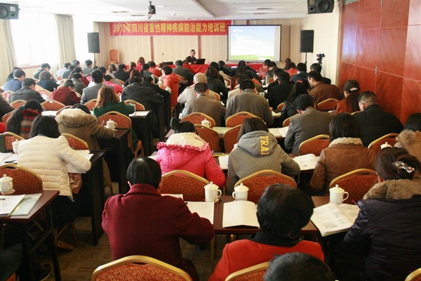 3月4日-3月8日分两期对全省21个市州360余名学员进行了由四川省区域心理卫生培训基地、自贡市精神卫生中心、自贡市医学会精神专委会举办的四川省重性精神疾病防治能力培训暨省继续教育培训班,省卫生厅疾控处王刚,自贡市卫生局党组书记、局长周富民,副局长邓昭红、副局长赵忠明,自贡市医学会秘书长胡俊出席了开幕式。