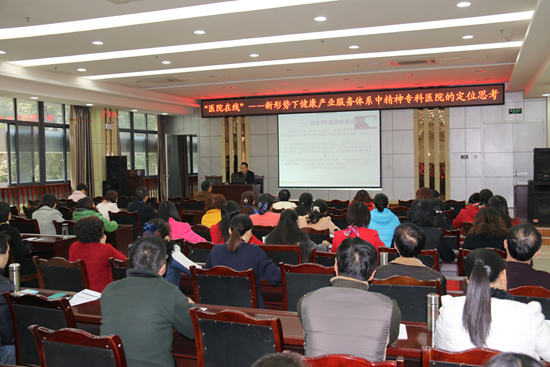 11月27日下午,在自贡市精神卫生中心主会场,中心主任谭友果教授受邀通过“医院在线”远程视频教学系统,对全国精神病专科医疗机构做了一场题为《新形势下健康产业服务体系中精神专科医院的定位思考》的专题讲座。市精神卫生中心护士长以上干部70余人及全国分会场一百多家医院的同仁聆听了此次讲座。