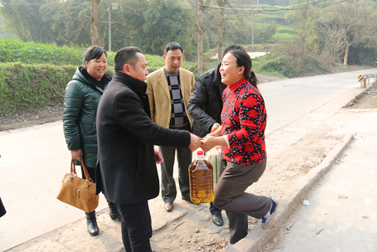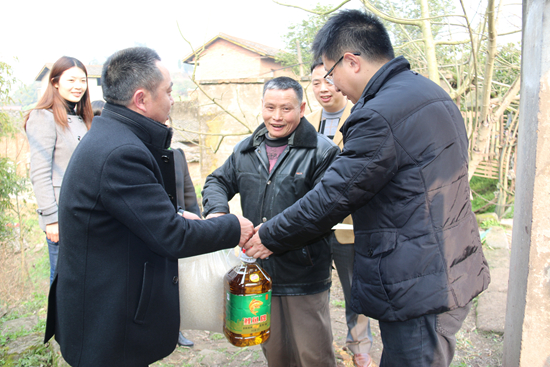 为践行全心全意为人民服务的宗旨,深入推进“三联三服务”和扶贫工作,做好困难群众的生活保障工作。在传统节日春节即将来临之际,市五医院党委书记程勇一行5人代表全院职工,深入大安区新民镇柏树村,开展2015年春节送温暖活动,把党的关怀和温暖送到贫困户、困难党员家中,使他们过一个欢乐、祥和、喜庆的新春佳节。