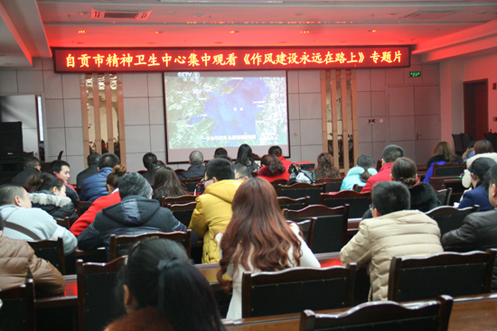 2月12日下午,自贡市精神卫生中心利用党员集中学习时间组织全体党员及护士长以上干部共120余人在医院三楼多功能厅集中观看由中央纪委宣传部、中央电视台联合摄制的电视专题片《作风建设永远在路上》。