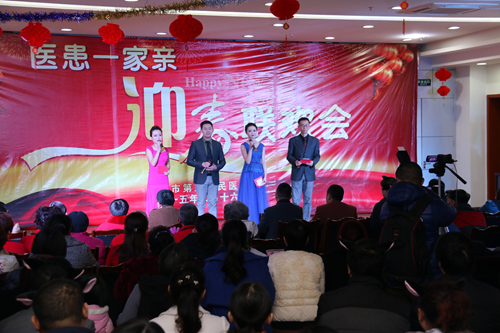 迎春联欢会在歌曲串烧《新年好》中拉开帷幕,歌舞、小品轮番上阵,节目表演亮点纷呈,掌声、欢笑声不绝于耳。既有爆红神曲《小苹果》、青春洋溢的街舞《believe us》,也有宣传社区卫生工作和医保政策的小品《社区工作趣闻》,更有医患同台表演的《神曲大串烧》、《舞蹈串烧》等节目,将联欢会不断推向高潮。这些自编自导的曲目,不仅展示了医院职工奋发有为,积极向上的精神风貌,展示了患者乐观应对疾病,勇敢直面人生的良好心态,更充分体现了“医患一家亲”的和谐氛围,他们都以自己独有的方式表达对祖国、对医院的热爱和对新年的祈盼。最后,联欢会在行政工会选送的歌舞《天耀中华》中圆满落幕。