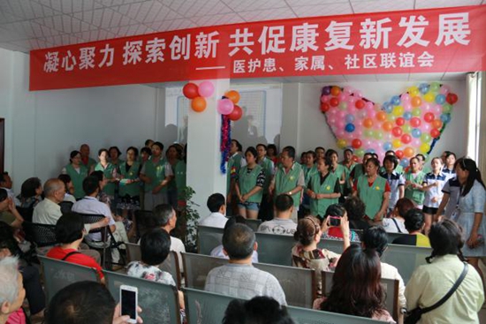 联谊会上,参加医院日间康复的患者表演了手语舞《爱的奉献》,康复部主任为现场的患者及家属讲解了《医院开展日间康复的现状及未来发展》。患者、家属及社区代表分别讲述了参加日间康复活动的变化及效果,现场还进行了精神病患者家属委员意愿调查。活动收到了良好的效果,医护患亲如一家,气氛温馨而祥和,联谊会为医护人员、患者及家属、社区居民之间架起了一座连心桥。他们希望多组织这样活动,积极宣传,消除社会对精神障碍患者的恐惧和歧视,让他们通过康复训练过上正常人的生活!