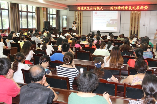 在三楼多功能厅,邱凤贤教授为医务人员进行了专题讲座,她用形象生动的比喻和真实的案例就“康复会所模式——国际发展趋势”进行了详细讲解。讲座结束后,邱凤贤教授一行还实地查看了医院精神康复科,了解了医院精神康复工作开展情况。邱凤贤教授对医院精神康复工作给予了充分肯定,对下一步将医院精神康复带入国际化康复会所模式充满了信心。
