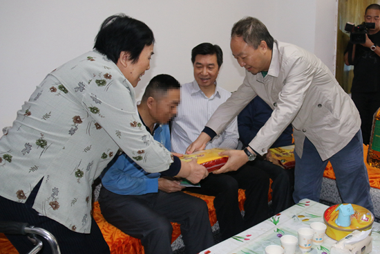 最后,周富民主任一行还来到大安区新民镇和龙井街上门慰问了严重精神障碍疾病贫困患者,为他们送去油、米等生活用品,市精神卫生中心为患者赠送价值700元的免费服药卡。