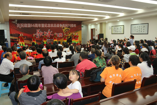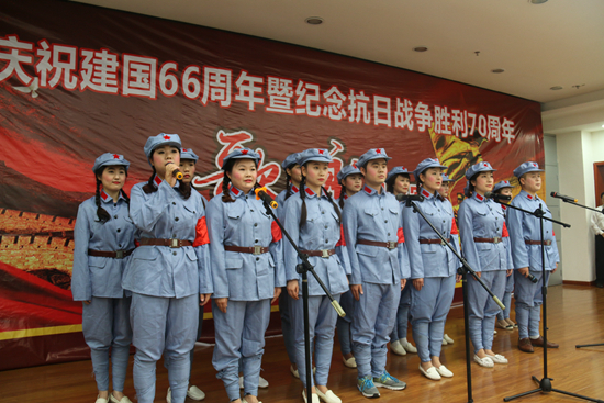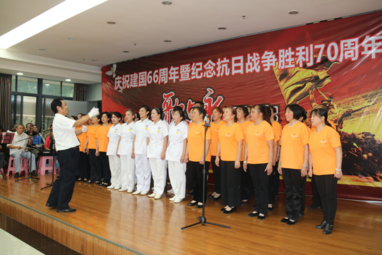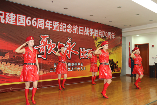 飞扬的歌声,吟唱难忘的岁月,凝聚心底不变的情结;熟悉的旋律,演绎时代的激越,回荡历史不改的真情。为迎接中华人民共和国成立66周年暨纪念中国人民抗日战争胜利70周年,9月29日下午,自贡市精神卫生中心隆重举行“迎国庆暨纪念抗日战争胜利70周年”歌咏比赛,畅抒全院职工勿忘国耻、缅怀先烈,爱我中华,讴歌祖国的爱国主义情怀,为祖国母亲66周年华诞、抗日战争胜利70周年献礼。