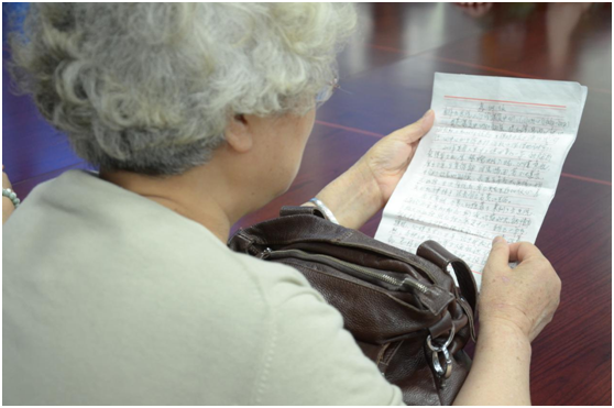 张阿姨在读感谢信的时候,其他几位阿姨都非常认真的听着,好几位眼中都泛起了泪花。一位阿姨一直在抹眼泪,也许想起了那段不堪回首的日子......