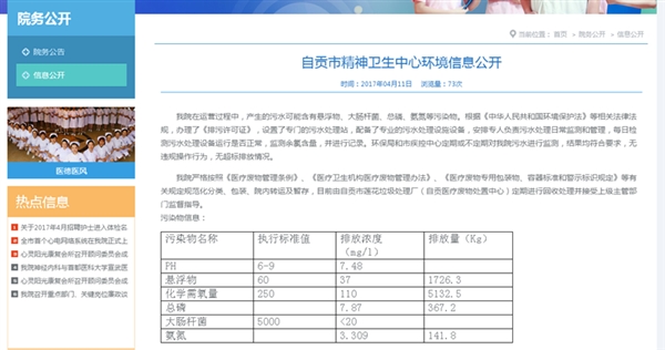 四、落实信息公开,做好医废管理和污水处理的基础信息公示。在医院官网公布了2016年环境信用评价的基本信息、医院《排污许可证》内容、环保部门《监察报告》及日常管理运行记录;制作《污水排放口》标示牌,公示医院污水排放口位置及排污口的基本情况,接受广大人民群众监督。