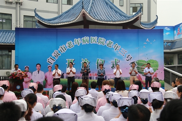 黄麟主任代表市卫生计生委对医院老年三号楼正式开诊表示祝贺。他指出,随着“银发浪潮”加快到来,养老问题、老年人就医问题日渐凸显。2016年底,我市60岁以上人口约70万人,占总人口的比例近22%,且呈现增长加快的趋势。我市是省级医养结合试点市,希望自贡市老年病医院抓住机遇,努力建成医养结合示范基地,促进我市健康服务业发展,为打造川南康疗养生养老基地做出贡献。