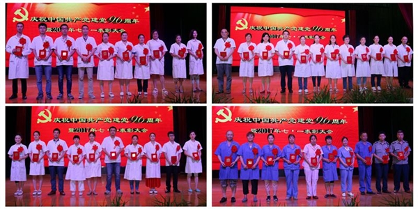 会议在庄严的国歌声中隆重开幕。会上,副院长曾伶宣布了医院党委关于命名2016-2017年度优秀共产党员、共产党员示范岗、共产党员示范科室以及2017年上半年服务之星、医德医风标兵、社会化服务标兵的决定,对医院6个先进集体及61名先进个人进行了表彰。