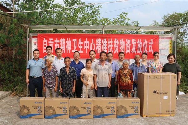 在该村村委会,慰问组与永嘉乡乡长、村委会工作人员及对口帮扶的贫困村民进行了座谈,详细了解贫困村民们的身体情况及目前面临的实际困难,叮嘱他们在高温天气下要保重身体,注意防暑降温,表示医院将尽己所能,帮助他们走上脱贫致富的道路,并现场发放了电风扇、洗衣机等家用电器。