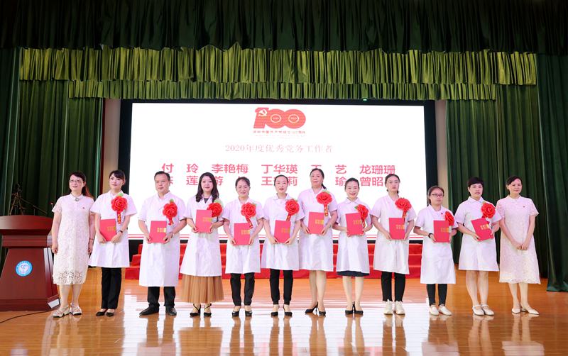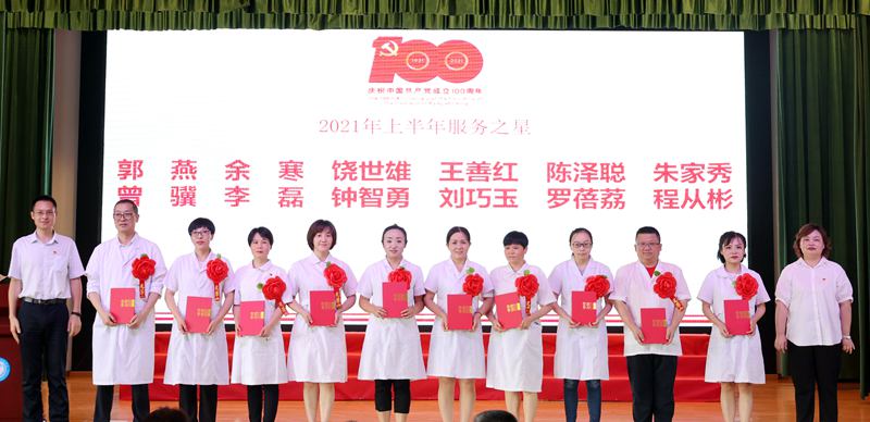 副院长曾伶同志宣读表扬决定,对评选出的最强党支部、共产党员示范科室、共产党员示范岗、优秀党务工作者、优秀共产党员、优秀共青团员以及服务之星、医德医风标兵、社会化服务标兵等9类先进对象进行了表扬,激励全体党员和干部职工在立足新发展阶段、贯彻新发展理念、构建新发展格局中建功立业、彰显作为。