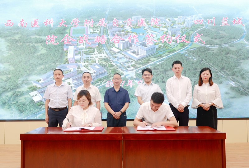 9月26日,我院与四川蓝城签订院企战略合作框架协议,双方将共同探索推进“同社区颐养”概念的落实落地,充分发挥医院医养结合及智慧健康建设成果的资源优势,在四川蓝城相关住宅小区项目的打造中融入智能健康穿戴设备、监测仪器、咨询体检、中医理疗等智慧健康相关的软硬件设施设备和服务,助力推进我市医养康养产业发展,为健康自贡建设添砖加瓦。