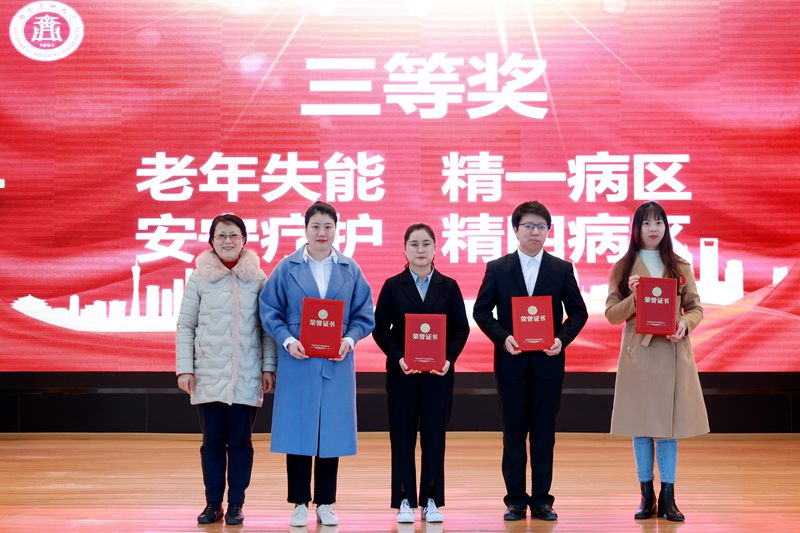 经过激烈角逐,老年干部科一病区甘霖以《多元化服务模式全方位改善患者住院感受》夺冠;老年肿瘤科杨艳《7S在病房管理中的应用》、精神康复科李丽《超越疾病·美丽人生》获得二等奖;精神科四病区曾巍《JIC标准化管理助力护理质量提升》、安宁疗护病区高志娟《双氧水在一例Ⅳ期粪性感染压力性损伤创面VSD冲洗中的应用及护理个案经验汇报》、精神科一病区曹宇《安全契约·对精神分裂症患者自伤自杀行为的干预》、老年失能病区宋家月《多维度沟通在护理交接工作中的应用》获得三等奖。