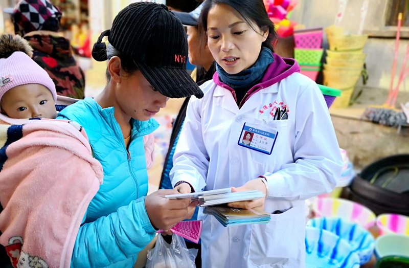 李留萍(右一)到喜德县尼波镇卫生院开展健康扶贫巡回义诊