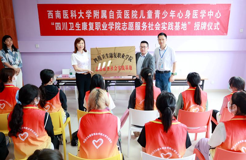 5月11日,“四川卫生康复职业学院志愿服务社会实践基地”授牌仪式在我院儿童青少年心身医学中心举行。四川卫生康复职业学院党委副书记李华、我院副院长叶安红、志愿者代表以及儿童青少年心身医学中心医务人员代表参加。