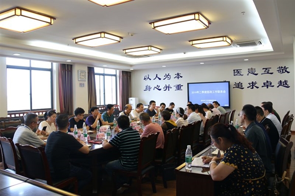 近日,2019年二季度医政工作联系会在我院召开。市医调委主要负责人及市卫健委相关人员,各区县卫健局、高新区社事局分管领导和相关股室负责人,三级医疗机构医务科科长,市卫生计生监督执法支队分管领导和医疗管理科负责人,参加会议。