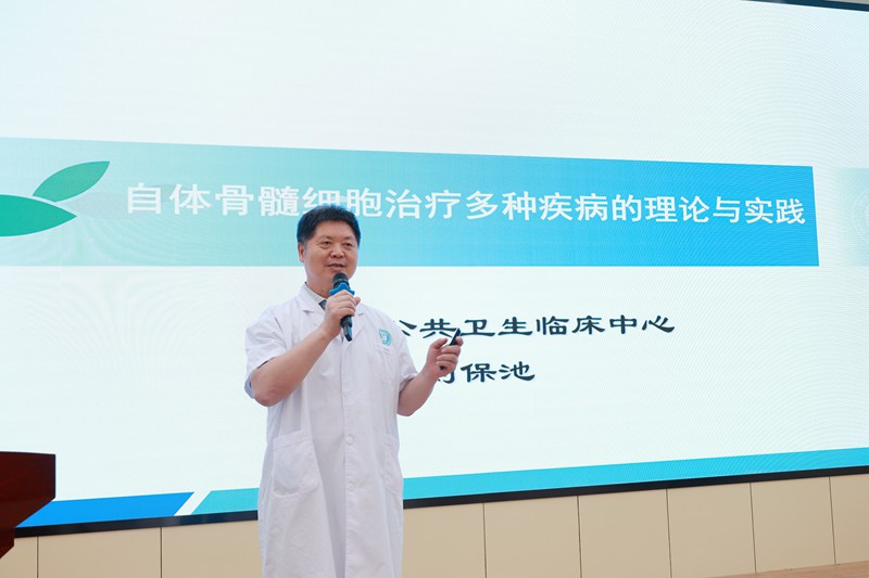 义诊结束后,刘保池教授以《自体骨髓细胞治疗多种疾病的理论与实践》为题开展了学术讲座,现场还进行了互动交流。